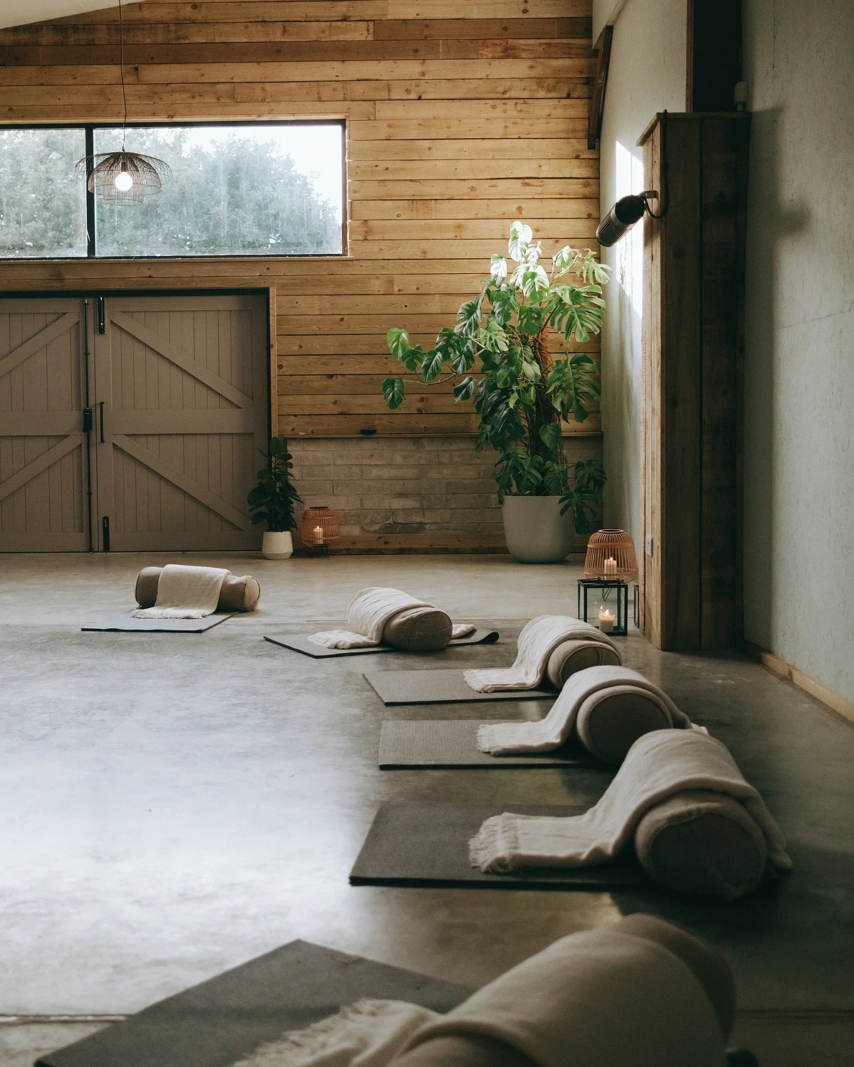 Gentle flow in the glass barn, focusing on mindful movement and grounding breath.