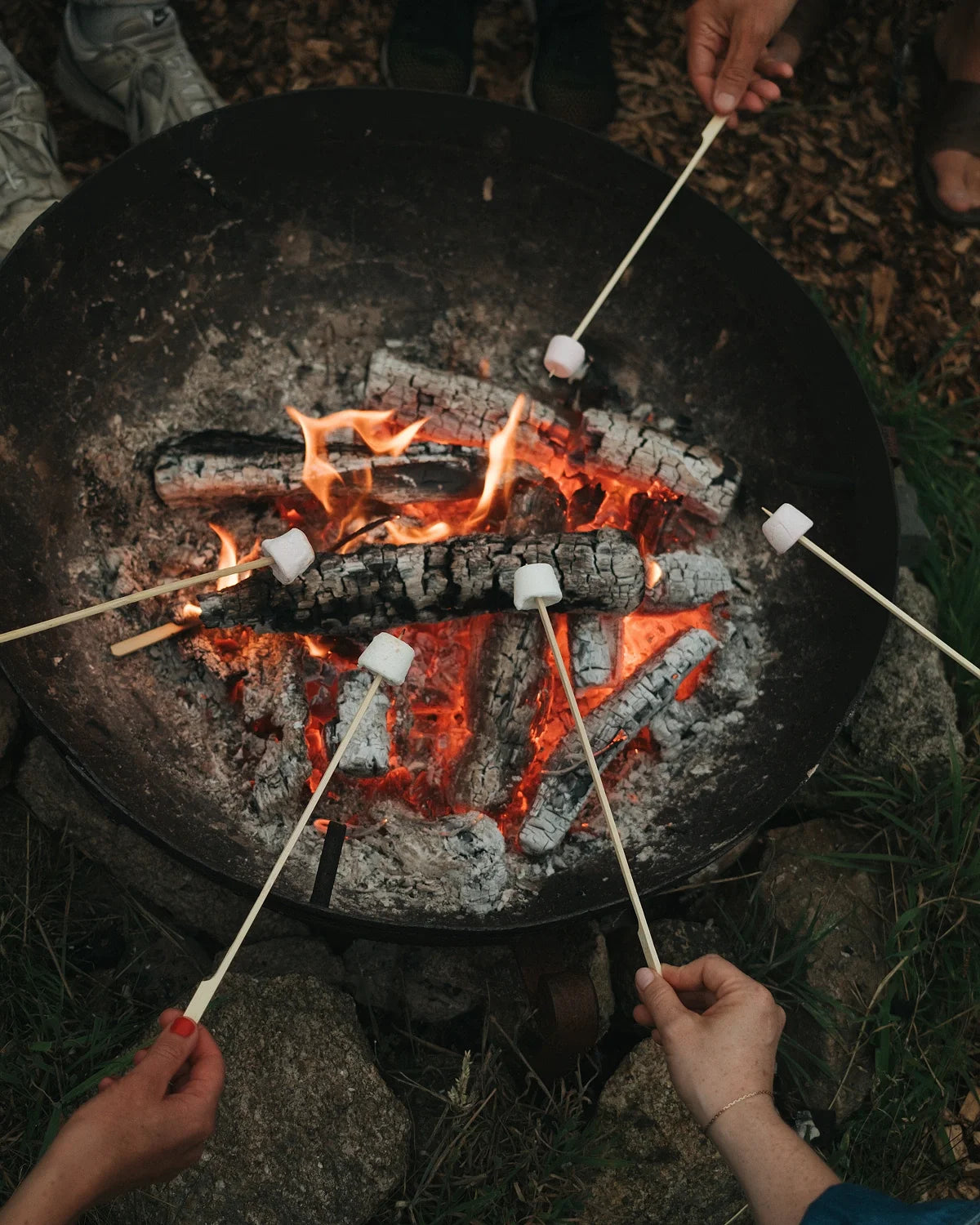 Campfire conversations, cacao, and storytelling beneath the stars.