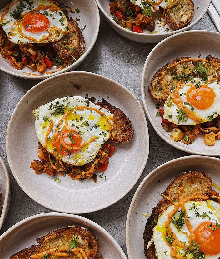 Shared meal featuring Cornish produce and coastal flavours.